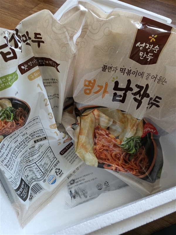 말로만 듣던 납작만두.. 오자마자 소분해서 냉동실에 넣고.. 몇개 구워서 쫄면이랑 냠냠.. 바삭바삭하고 고소한 맛!! 담번엔 떡볶이랑 채소 가늘게 채썰어 비빔만두 해먹어야겠어요