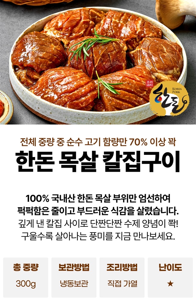 [100% 한돈] 국내산 국대 목살 칼집구이 300g / 1팩