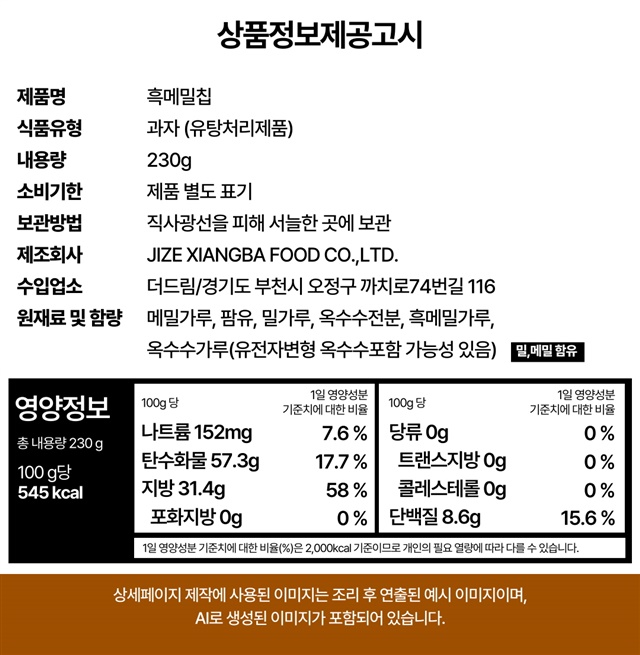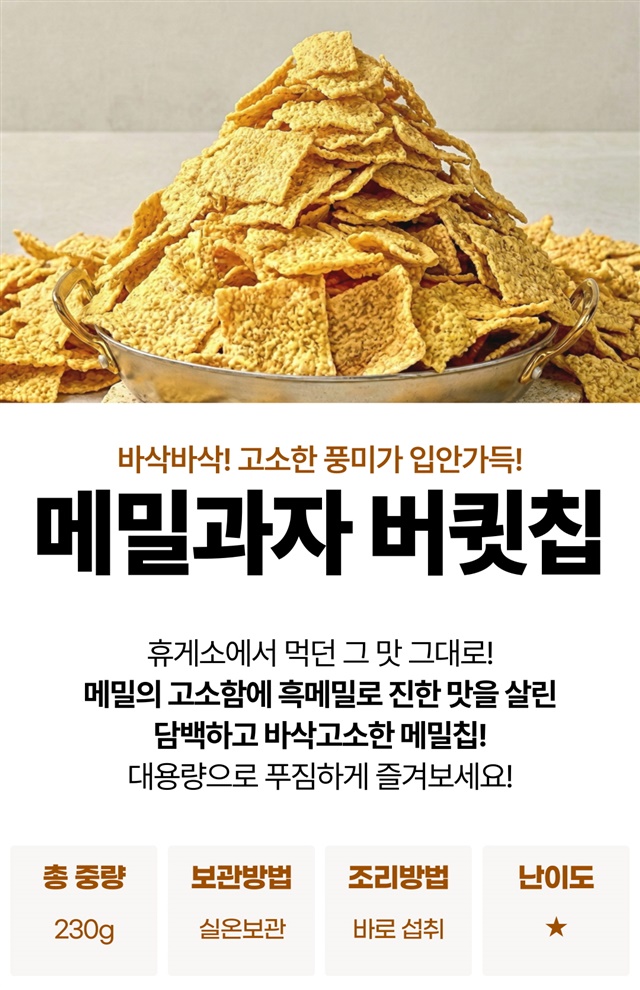 [대용량] 바삭바삭! 고소한 황금 흑 메밀과자 버큇칩 230g 2팩