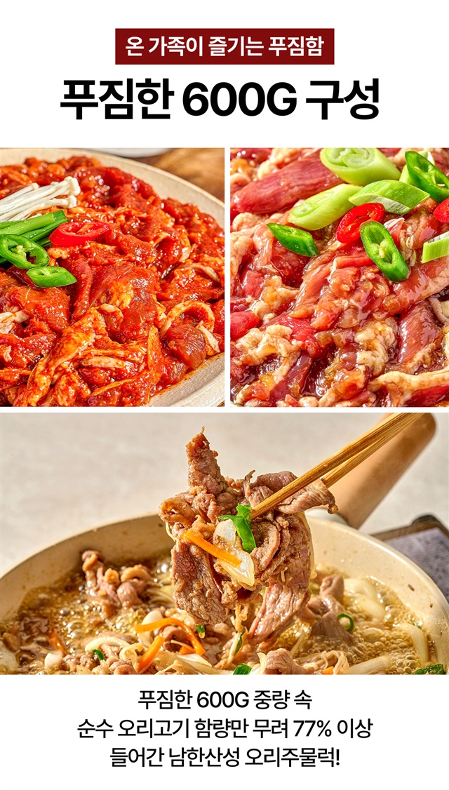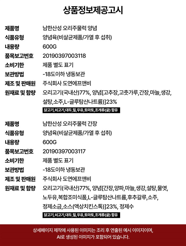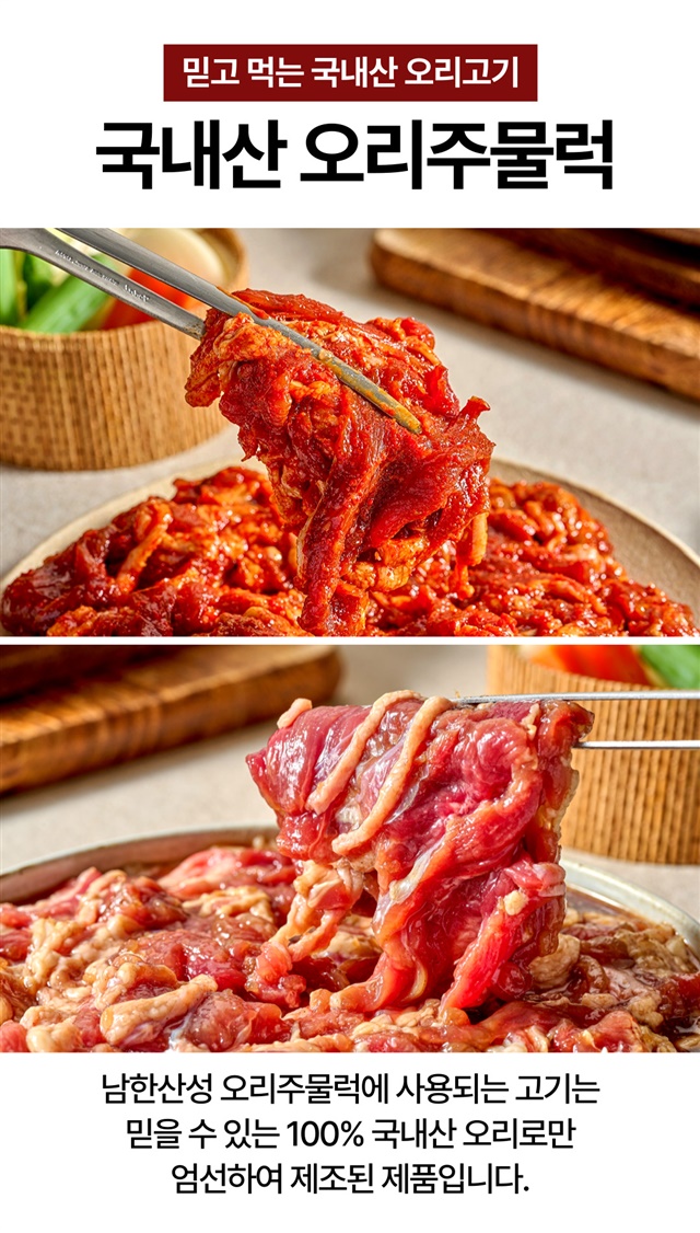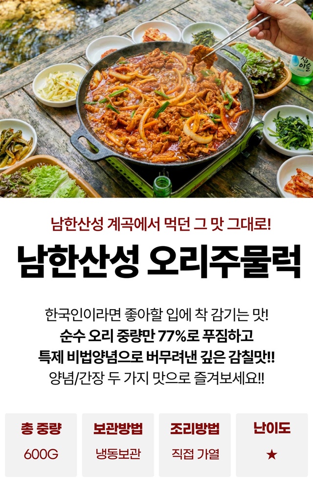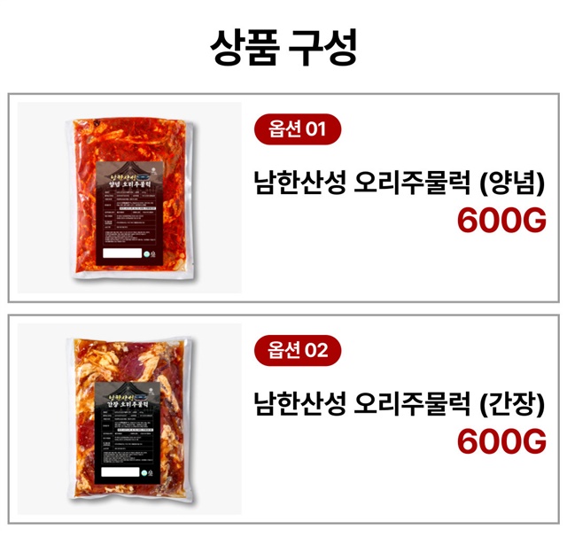 남한산성 명물 국내산 오리주물럭 양념/간장 600g / 1팩