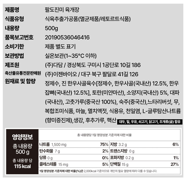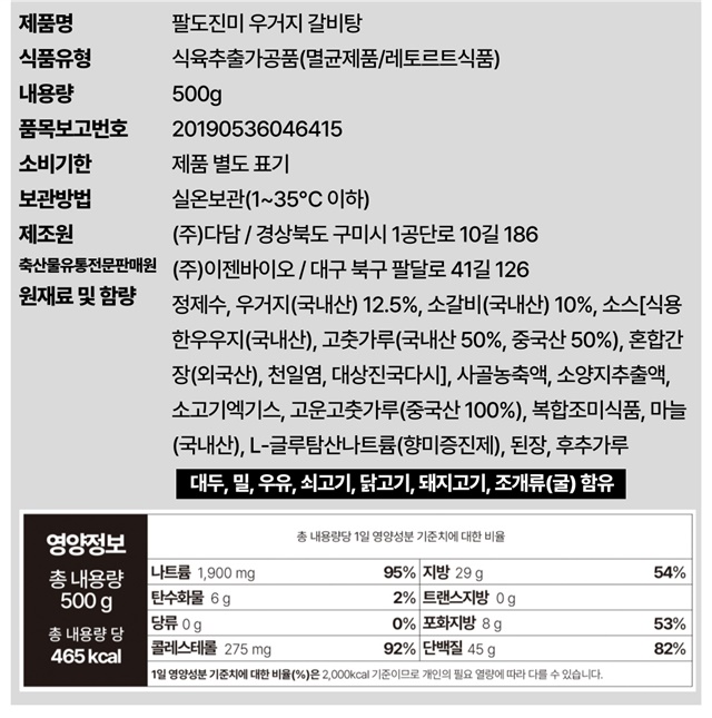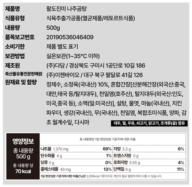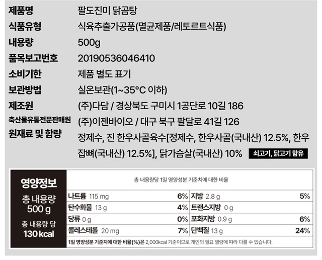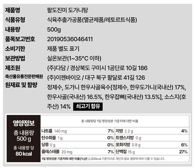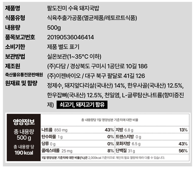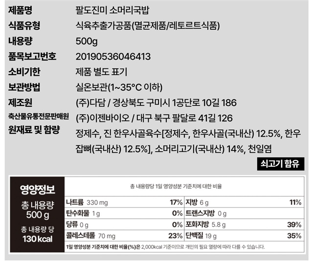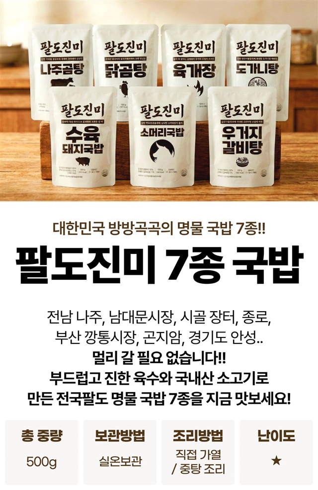 [팔도진미] 100% 한우 소머리 사골육수 소머리국밥 500g / 1팩