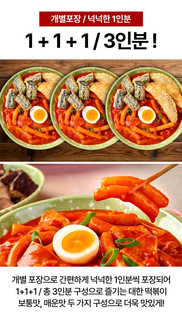 [1+1+1] 국가대표 대한떡볶이 (보통맛/매운맛) / 3팩 세트