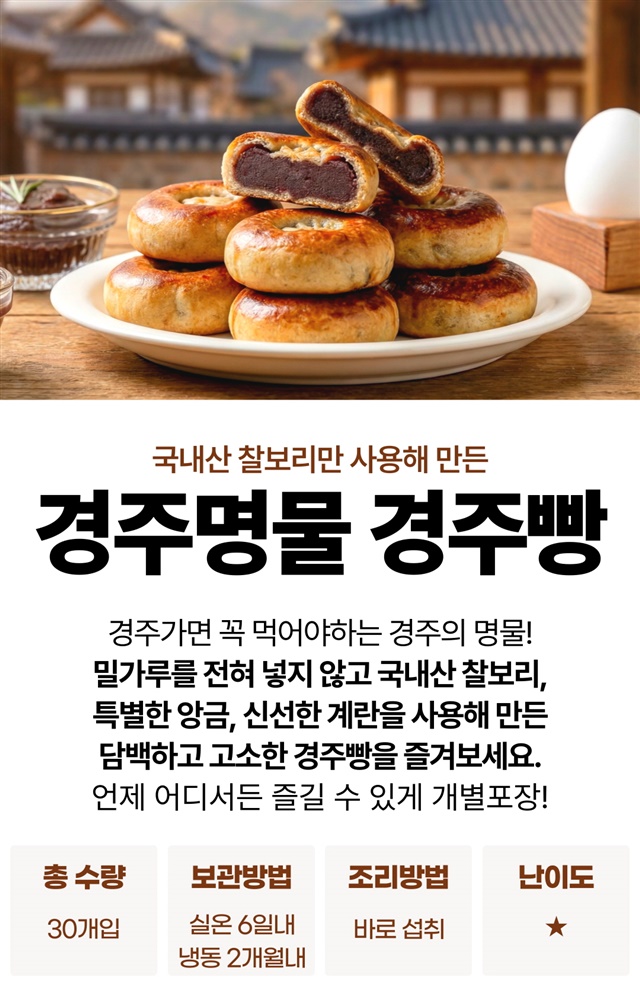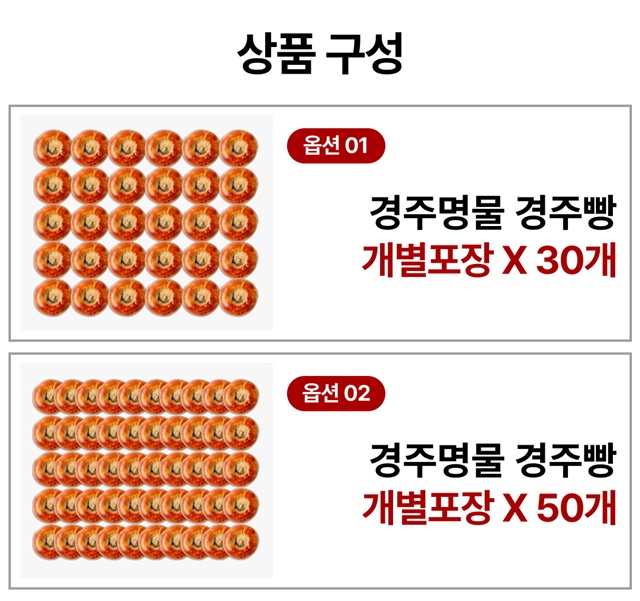 [당일생산] 경주 명물 밀가루 없는 개별포장 경주빵 30개입 / 50개입