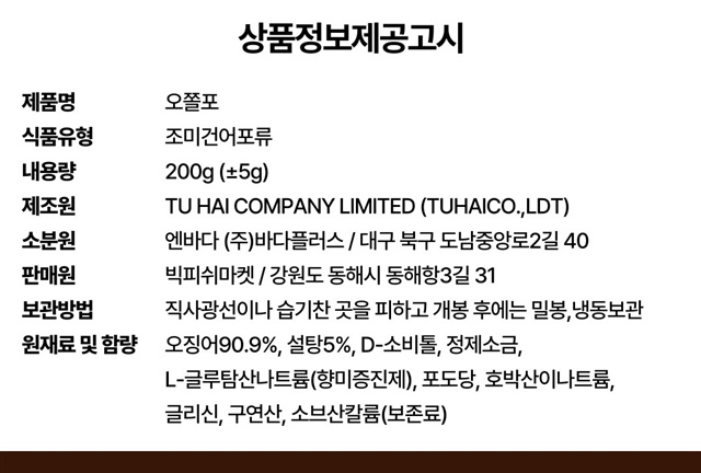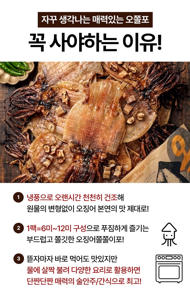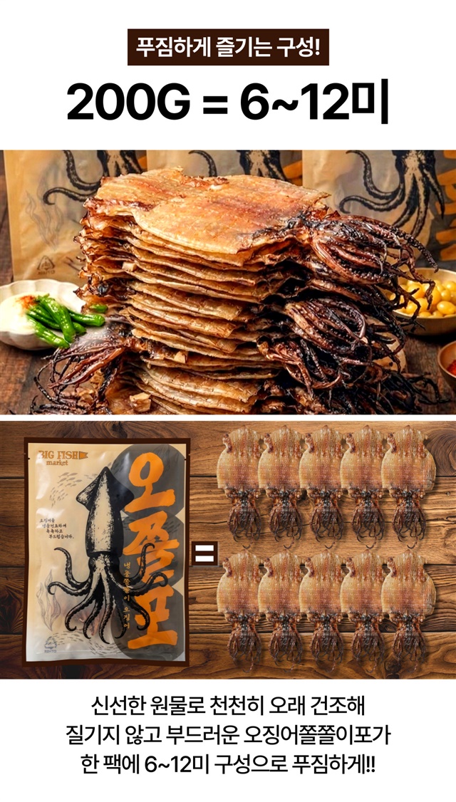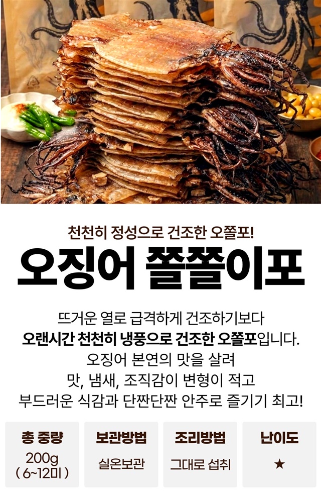 [6~12마리] 냉풍으로 말린 통 오징어 쫄쫄이포 / 오쫄포 200g