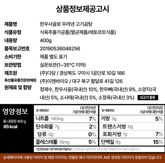 [6팩 세트] 한우사골로 20시간 우려낸 국내산 양지 고기곰탕 400g / 6팩