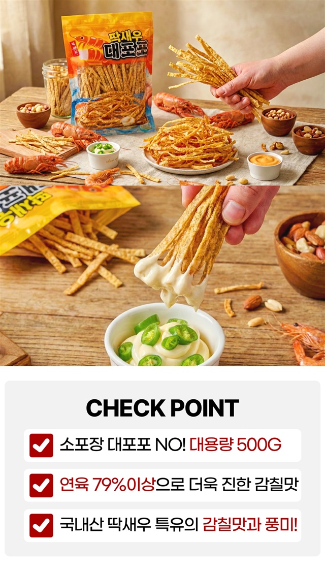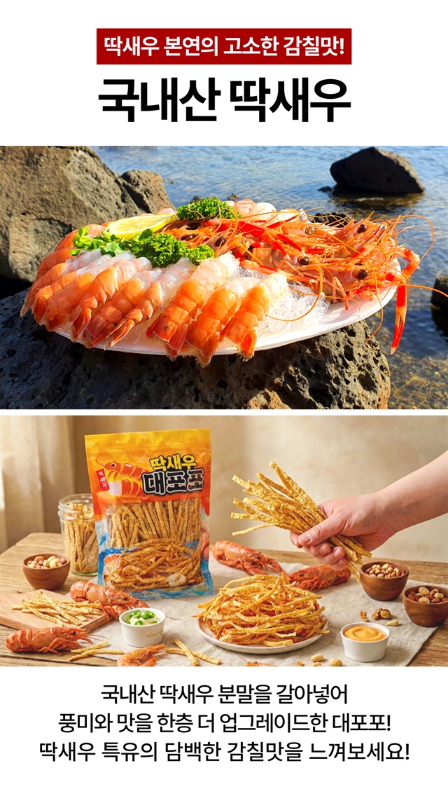 어포를 좋아하는데 딱새우가 눈에 딱 들어오더라구요 사실 따로 조리할 필요도 없이 간단하게 정말 먹기편하잖아요~~ 먹기좋게 슬라이스 되어 있고~~ 대용량이라서 양도 많고 지퍼팩이라서 보관도 편해요~