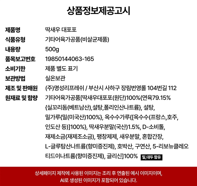 [대용량] 딱새우가 들어간 대포포 500g / 1팩