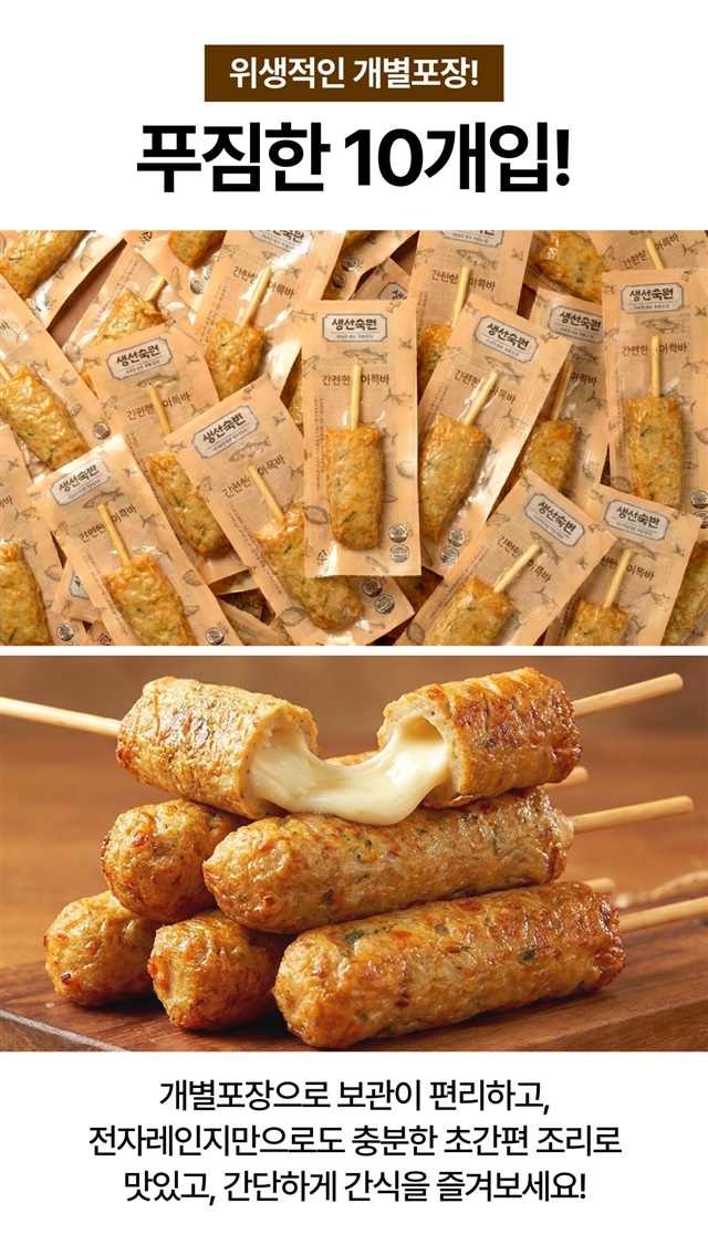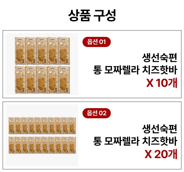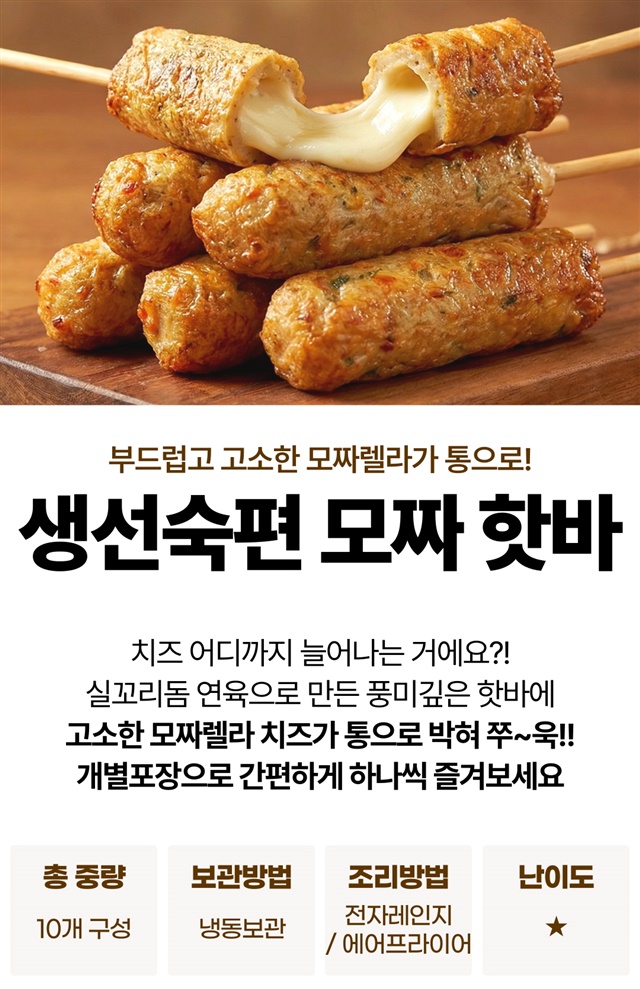 [10팩 세트] 생선숙편 통 모짜렐라 치즈핫바 10개