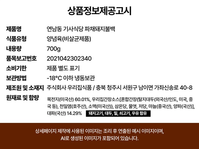 기사님 맛집! 연남동 기사식당 파채불백 3인분 700g / 1팩