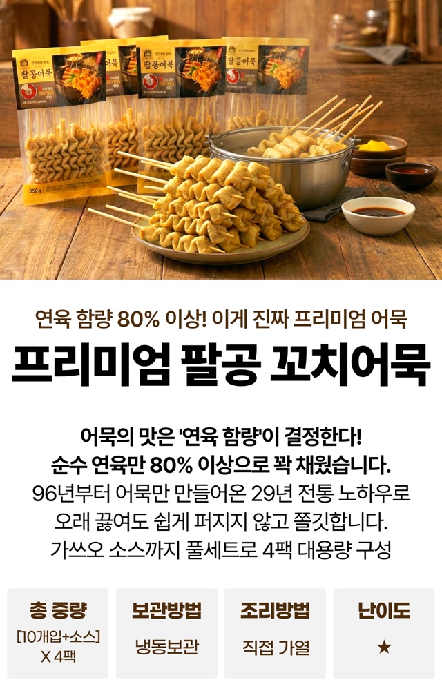 [연육함량 80%] 프리미엄 팔공 꼬치어묵 4팩 / 총 40개입