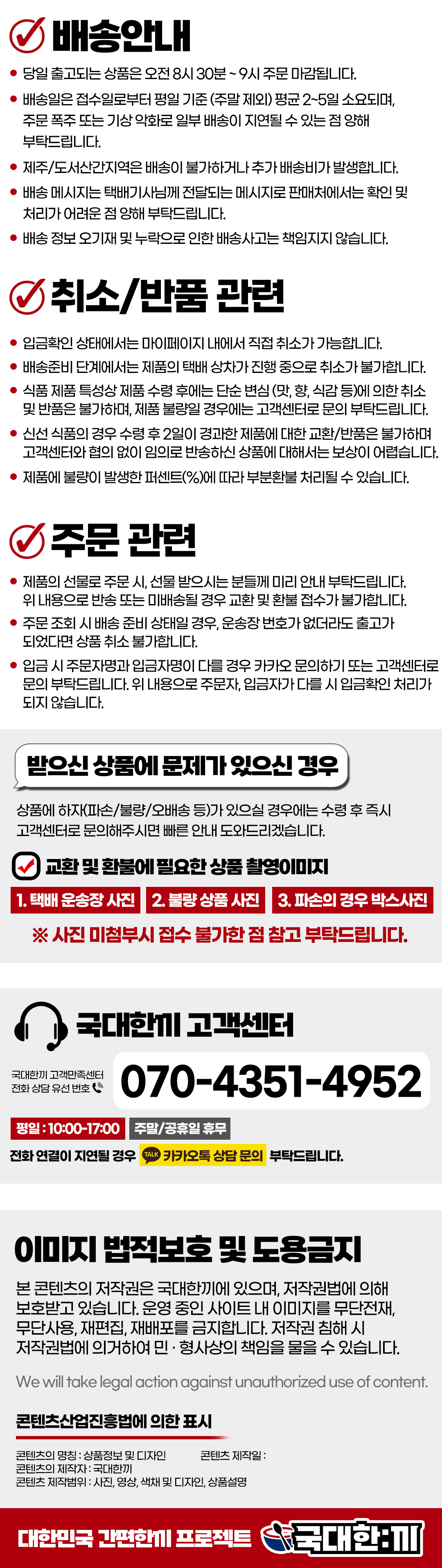 · 상품 불량 사유와 사진을 남겨 주시면 빠른 처리가 가능합니다.