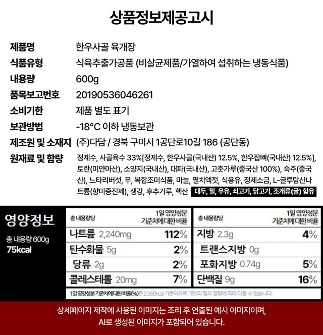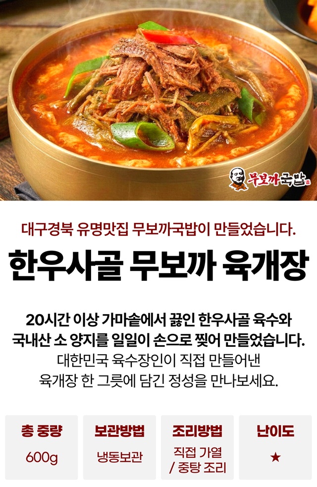 [지역맛집] 대구경북 1등 육수장인 무보까 국밥 육개장 600g / 1팩