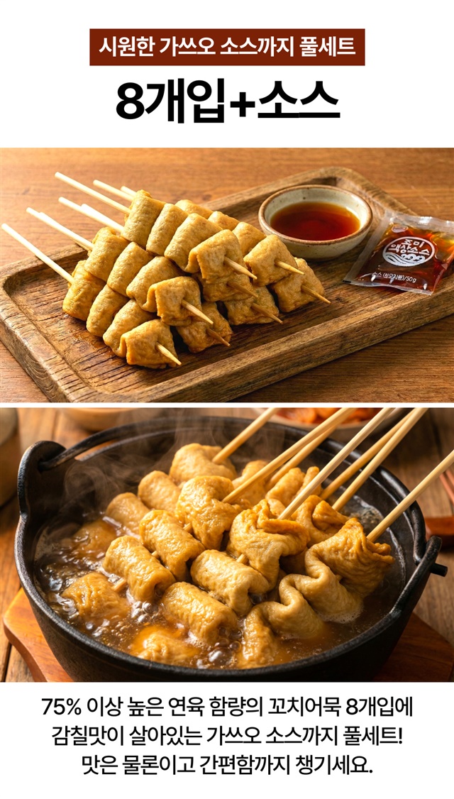 연육함량 75% 생선숙편 꼬치어묵 (꼬치8개+가쓰오소스) 270g / 1팩