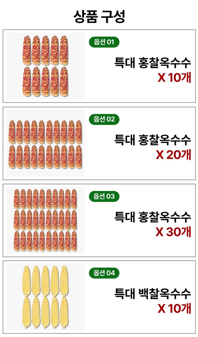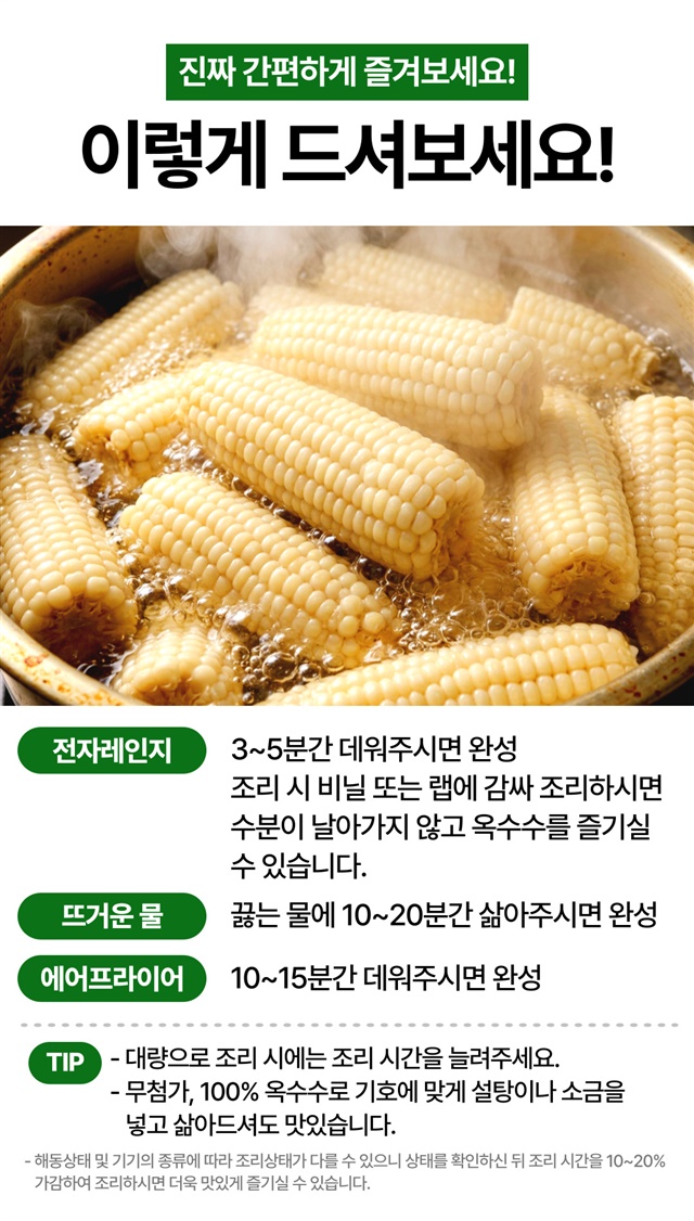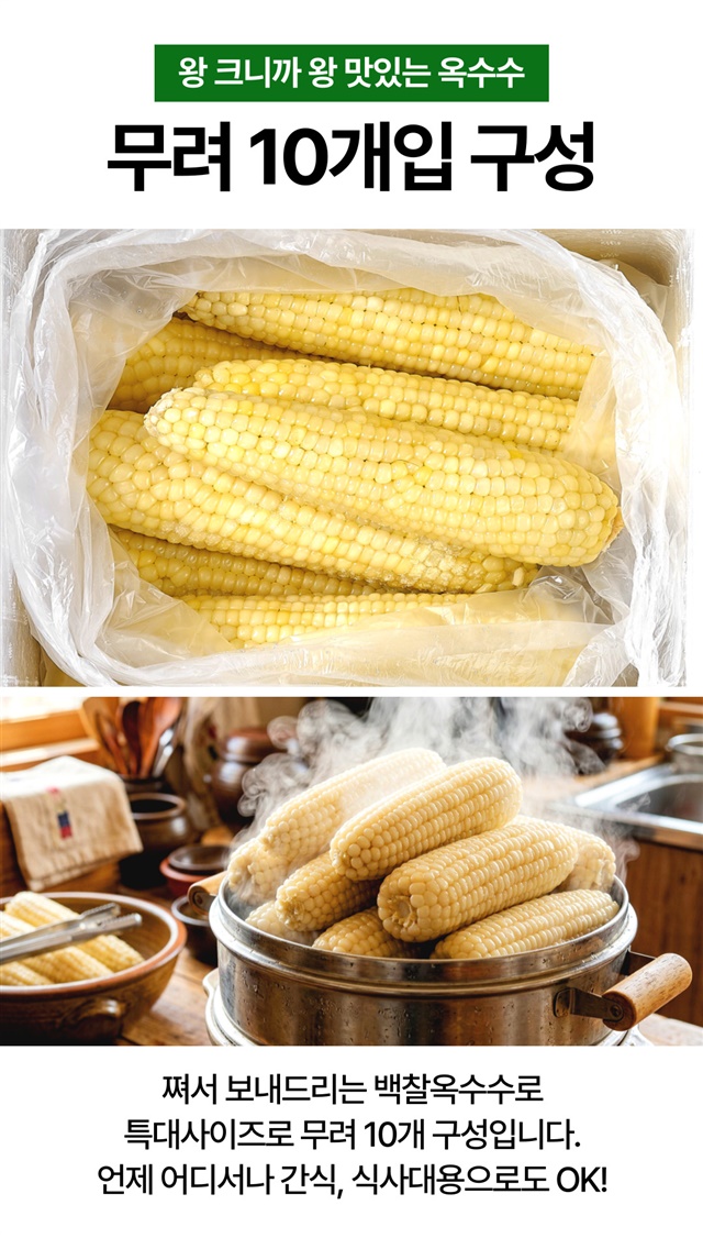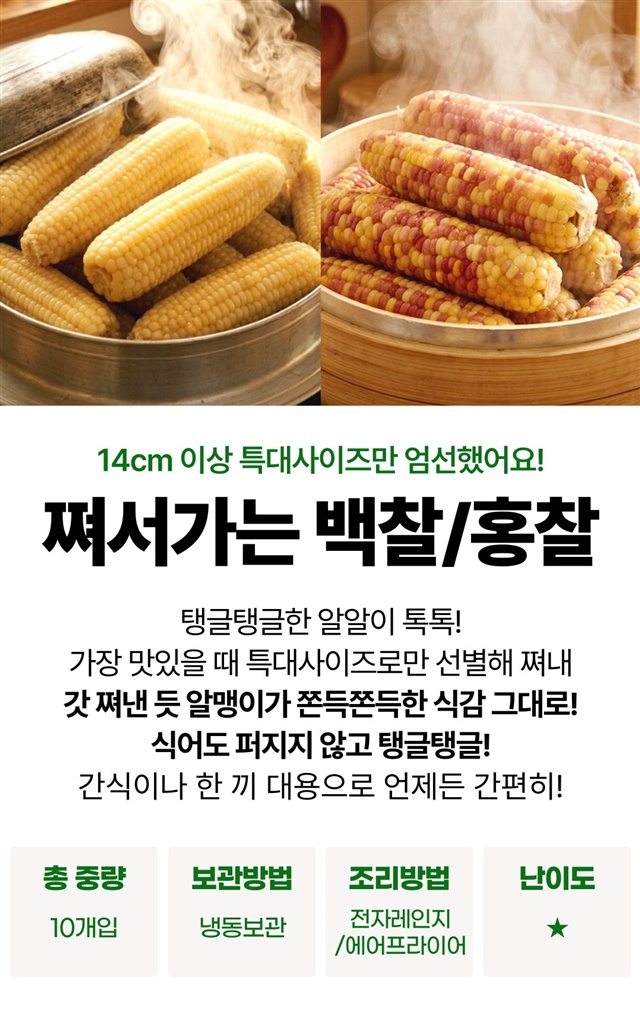 [특대사이즈] 쪄서가는 전자레인지 3분 백찰/홍찰 옥수수 / 10개입~