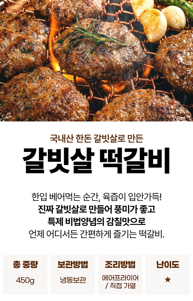 [한돈 갈빗살] 진짜 국내산 한돈 육즙 갈빗살 떡갈비 450g / 2팩
