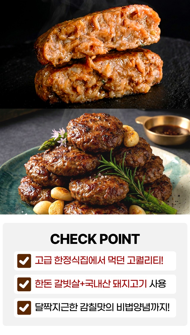 굽다가 좀 태웠는데도 엄청 맛있네요!!ㅎㅎ 고기함량도 많다고하고 육즙도 많아서 텁텁하지도않았어요 한끼먹을때 한사람당 1개반-2개 이렇개 먹으니 딱좋네요 다음에 또 구매할게요~