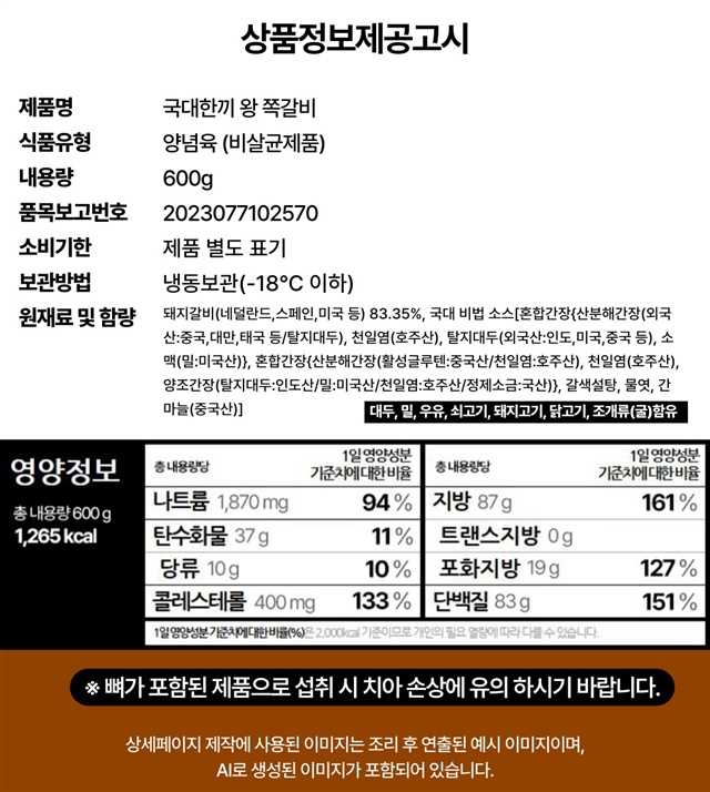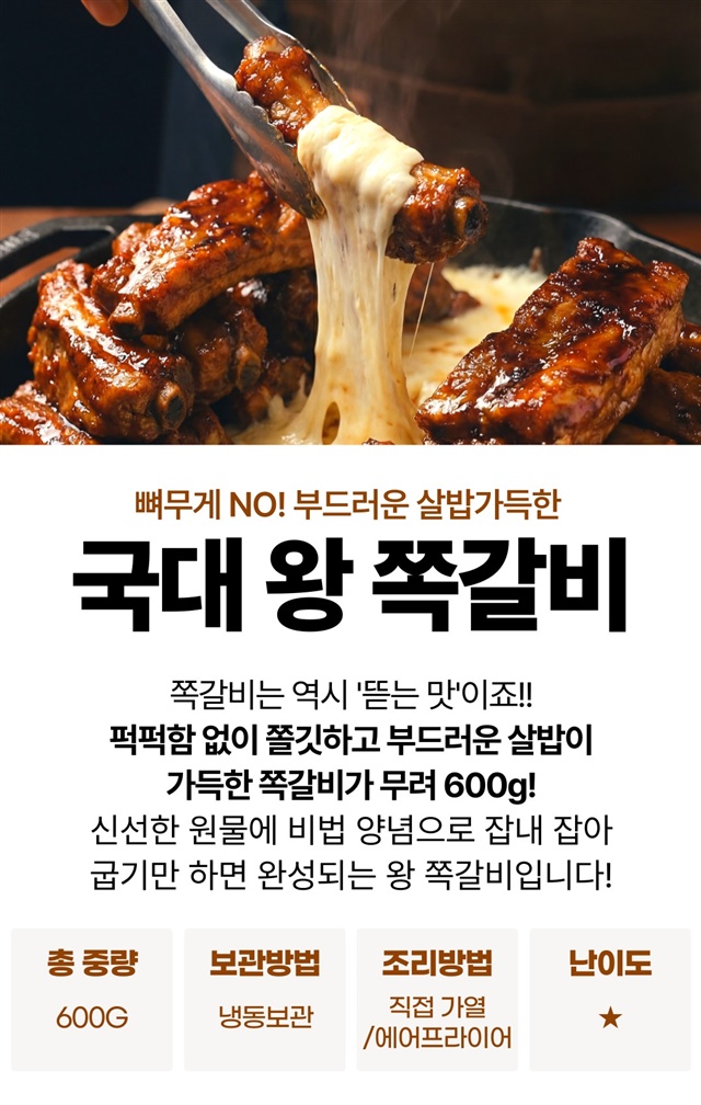 [국대] 살집가득 국대 왕! 쪽갈비 600g / 1팩