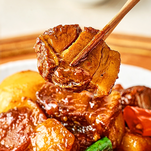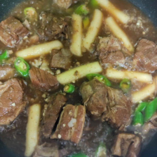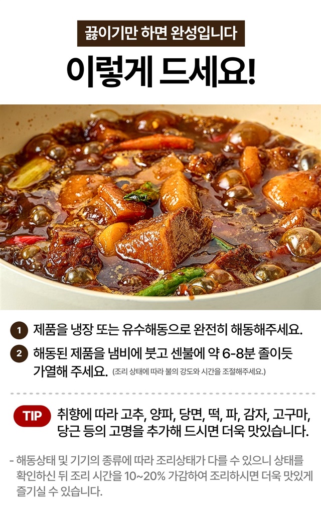 가격이 저렴해서 사봤는데 뜻밖의 득템 고기가 엄청 많이 들어있고 부드러워요 전 고추 총총 썰어 추가했네요 양념 너무 짜거나 달지도 않아서 좋구요 양파 감자 대파 등 추가로 넣어먹으면 더 좋은 듯^^