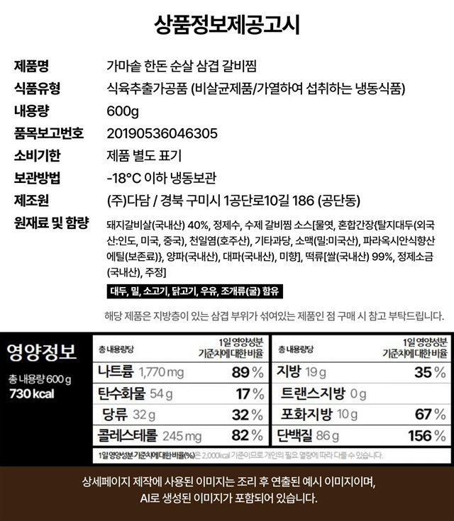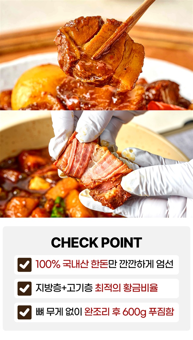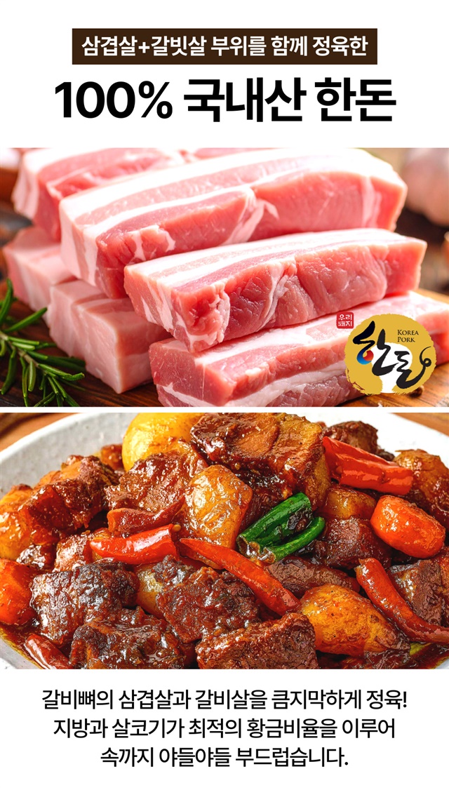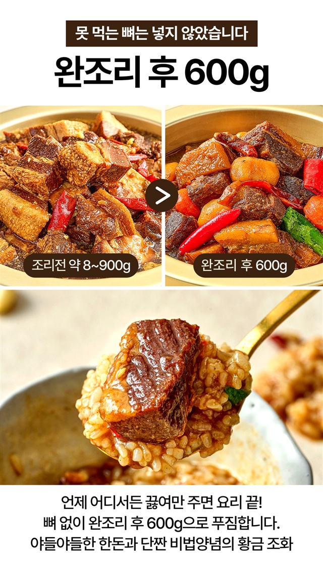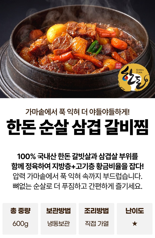 [100% 한돈] 가마솥 한돈 뼈없는 순살 삼겹 갈비찜 600g / 1팩