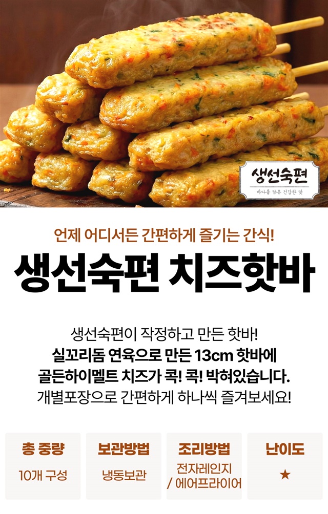 [10팩 세트] 생선숙편 골든 하이멜트 치즈핫바 10팩