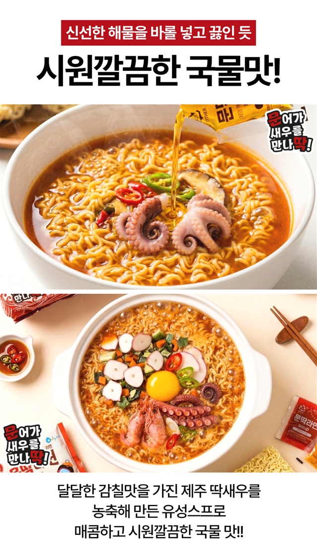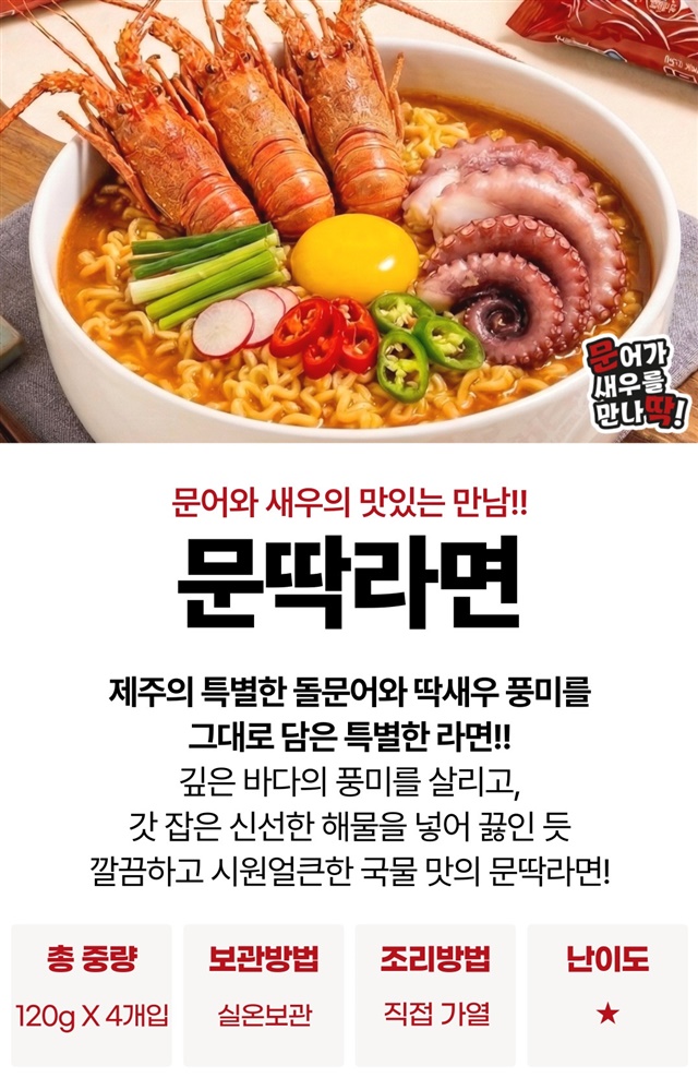 [제주 명물] 제주 돌문어+딱새우 문딱라면 멀티팩 (4개입) / 2팩