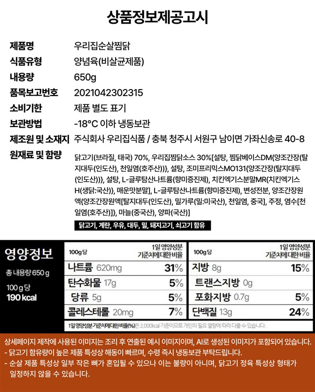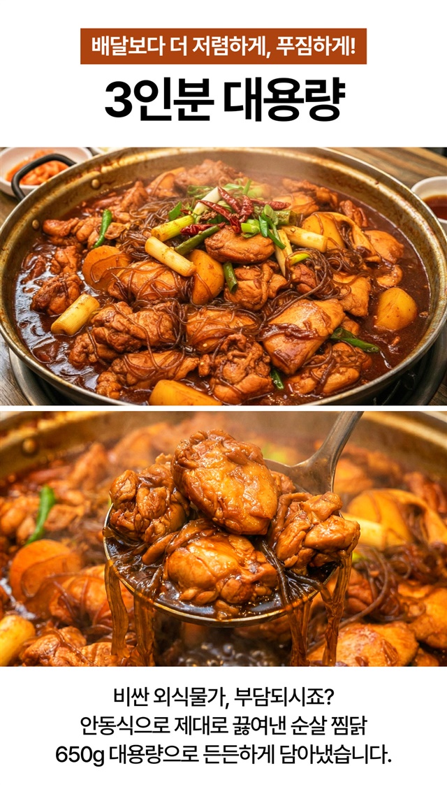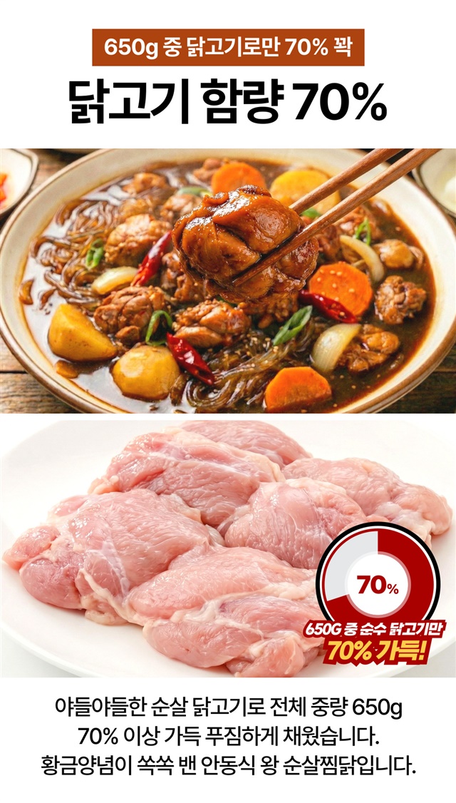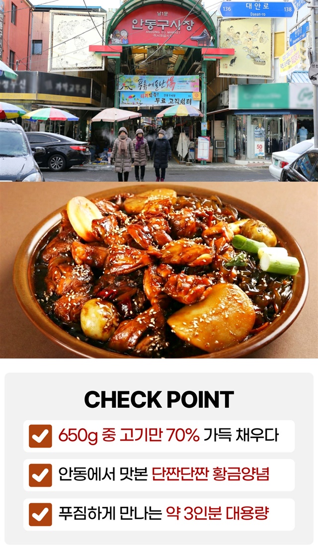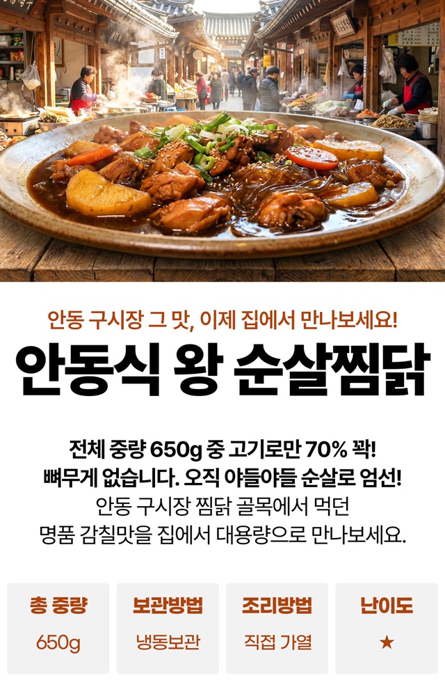 [안동명물] 안동 구시장 명물 왕 순살 찜닭 3인분 650g / 1팩