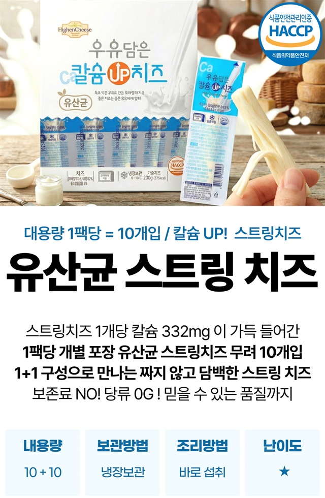[10개+10개] 칼슙 UP! 유산균 스트링치즈 10개 + 10개