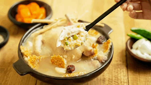 누룽지 삼계탕이라서 그런지 밥이 쫄깃하고 고소하네요. 닭도 부드럽고 맛있었어요.