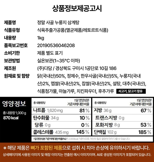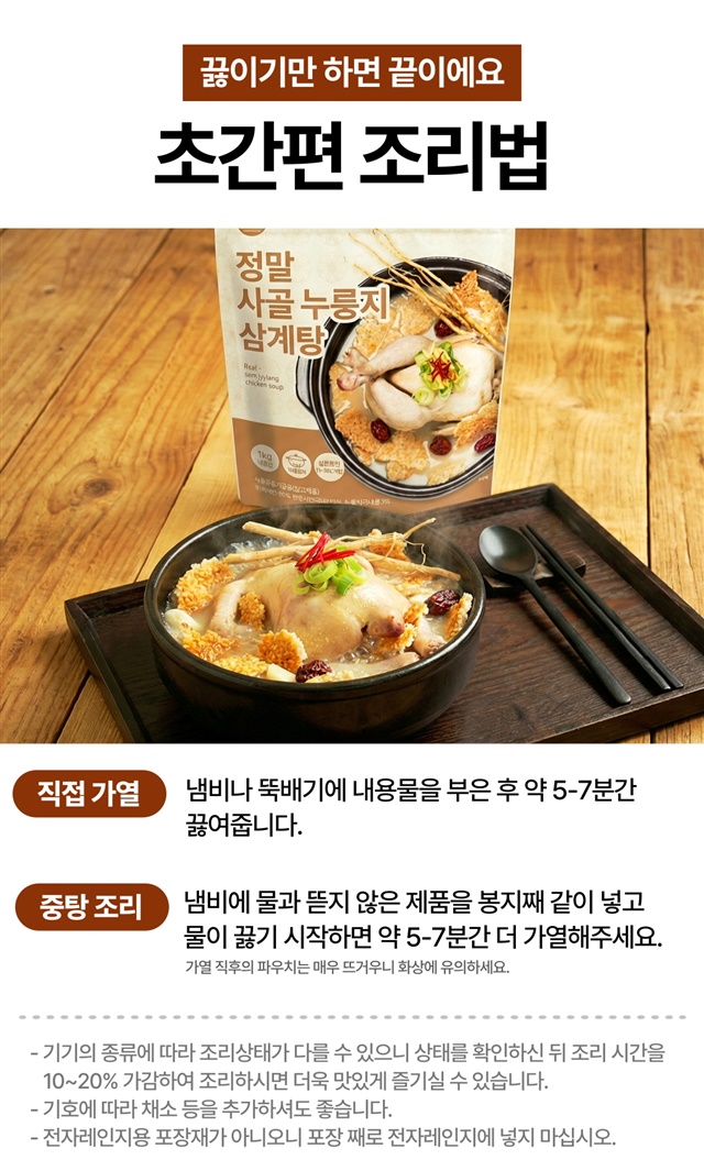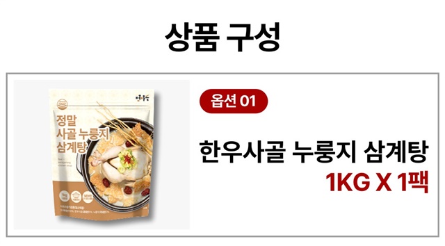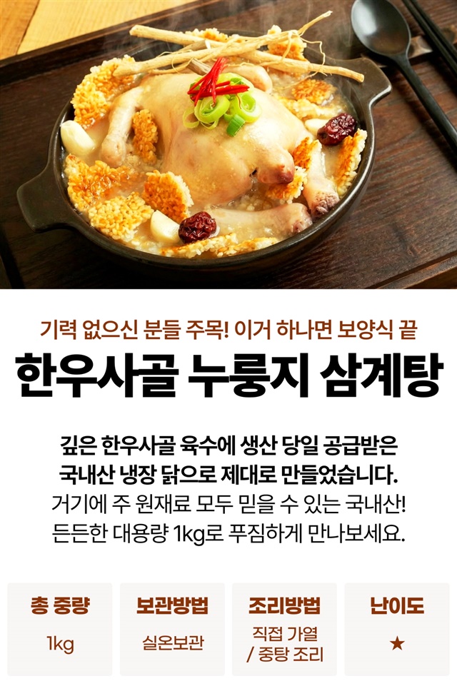 [100% 국내산] 한우사골로 우린 누룽지 삼계탕 1kg / 1팩