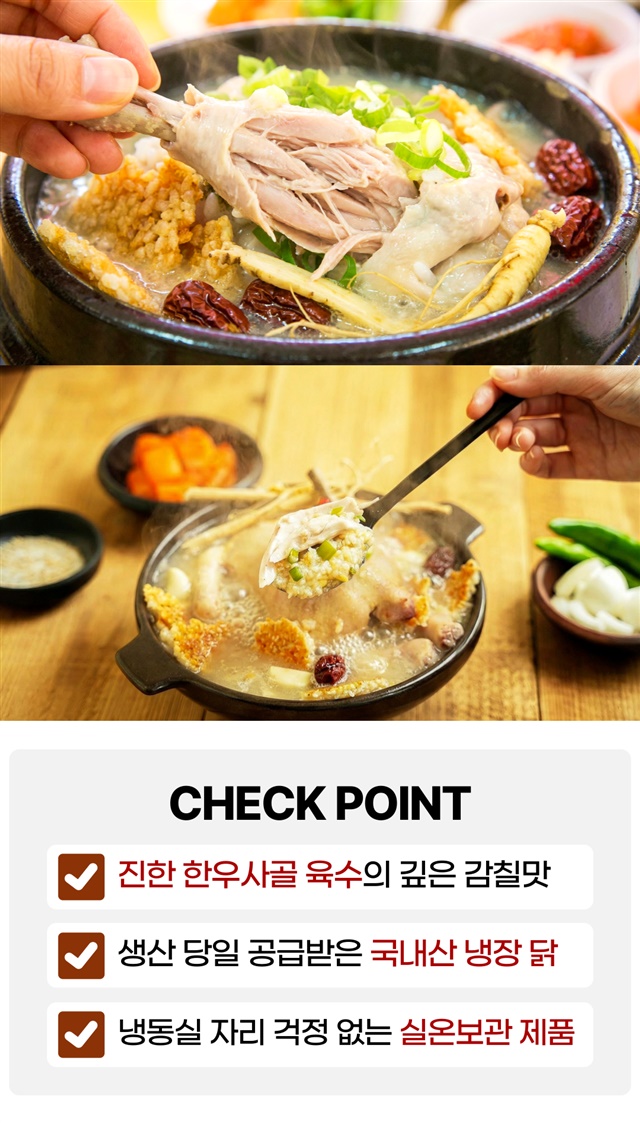 백숙을 좋아하지만 늘 직접 생닭으로 백숙을 먹었는데 처음으로 만들어진 백숙을 먹었네요. 백숙도 잘 익었고 냄새도 없이 맛이 아주 좋았어요. 맛있게 잘 먹었습니다. 저희는 국물이 넉넉해서 남은 국물에 밥을 넣어서 죽처럼 끓여서 먹었어요.