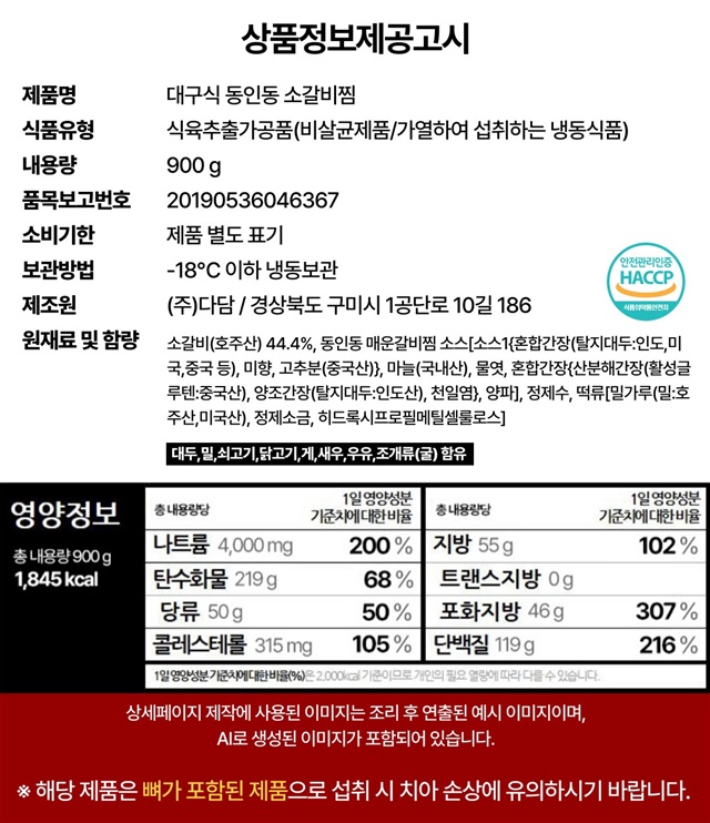 [대구 동인동] 10미 매운 동인동 소갈비찜 900g / 1팩