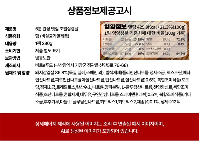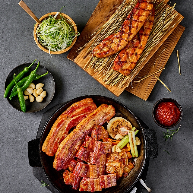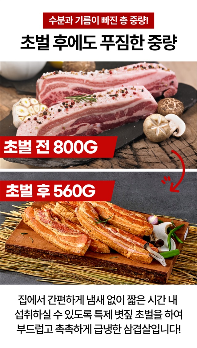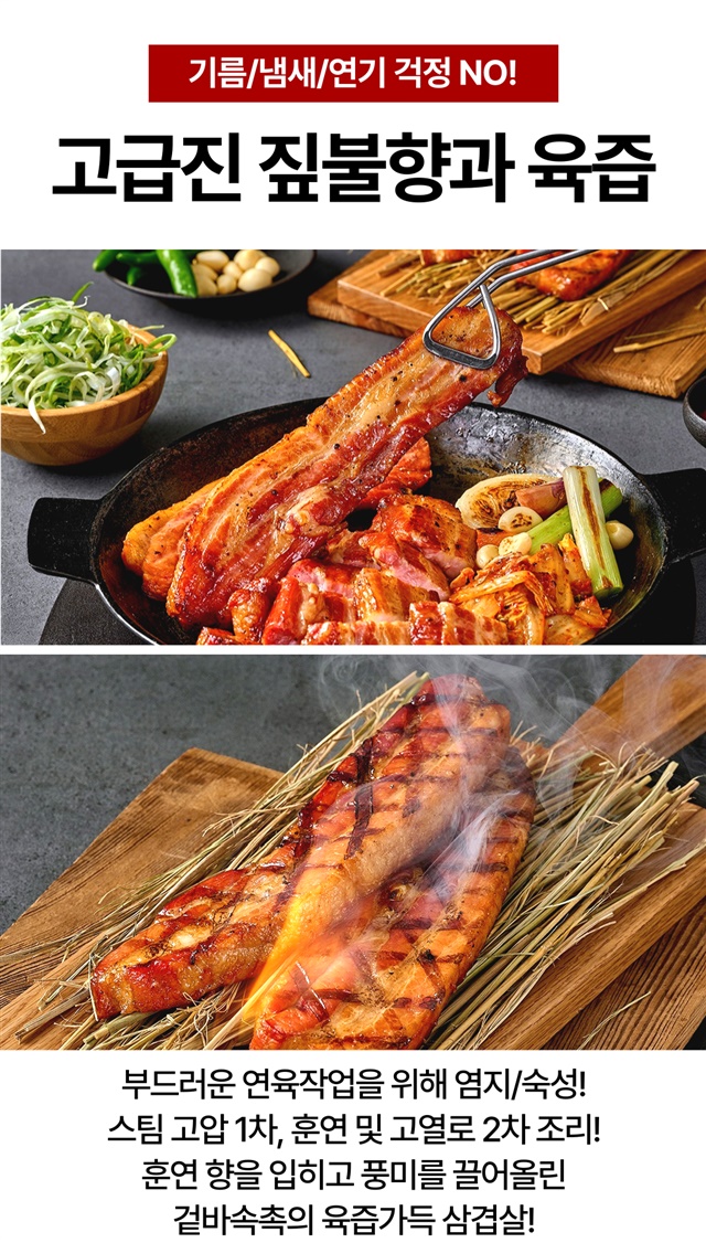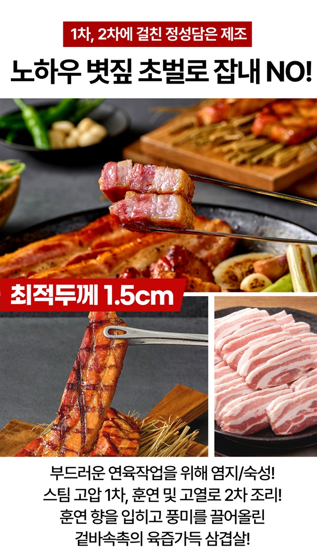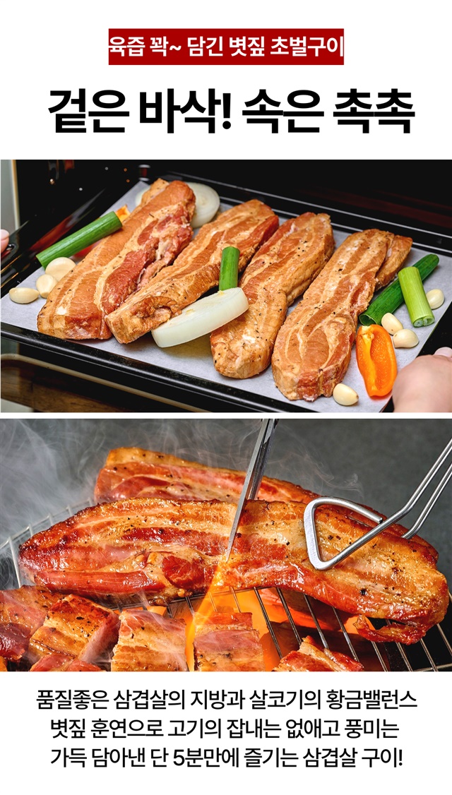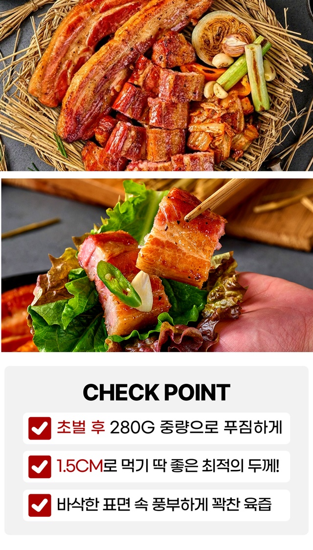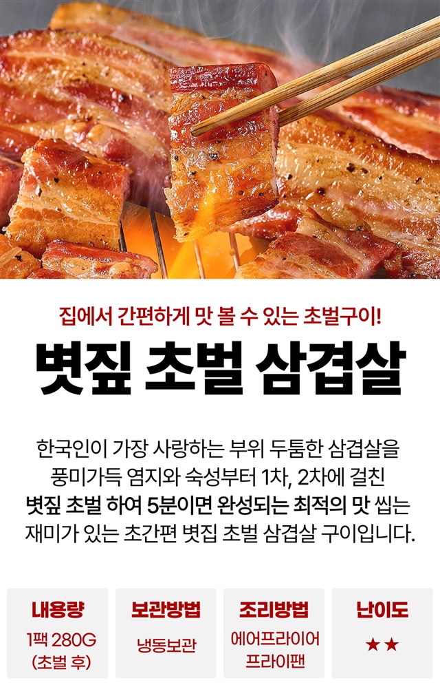 [5분완성] 초간편! 데워먹는 볏짚 초벌 삼겹살 (초벌전 800G 이상) / 280g X 2팩
